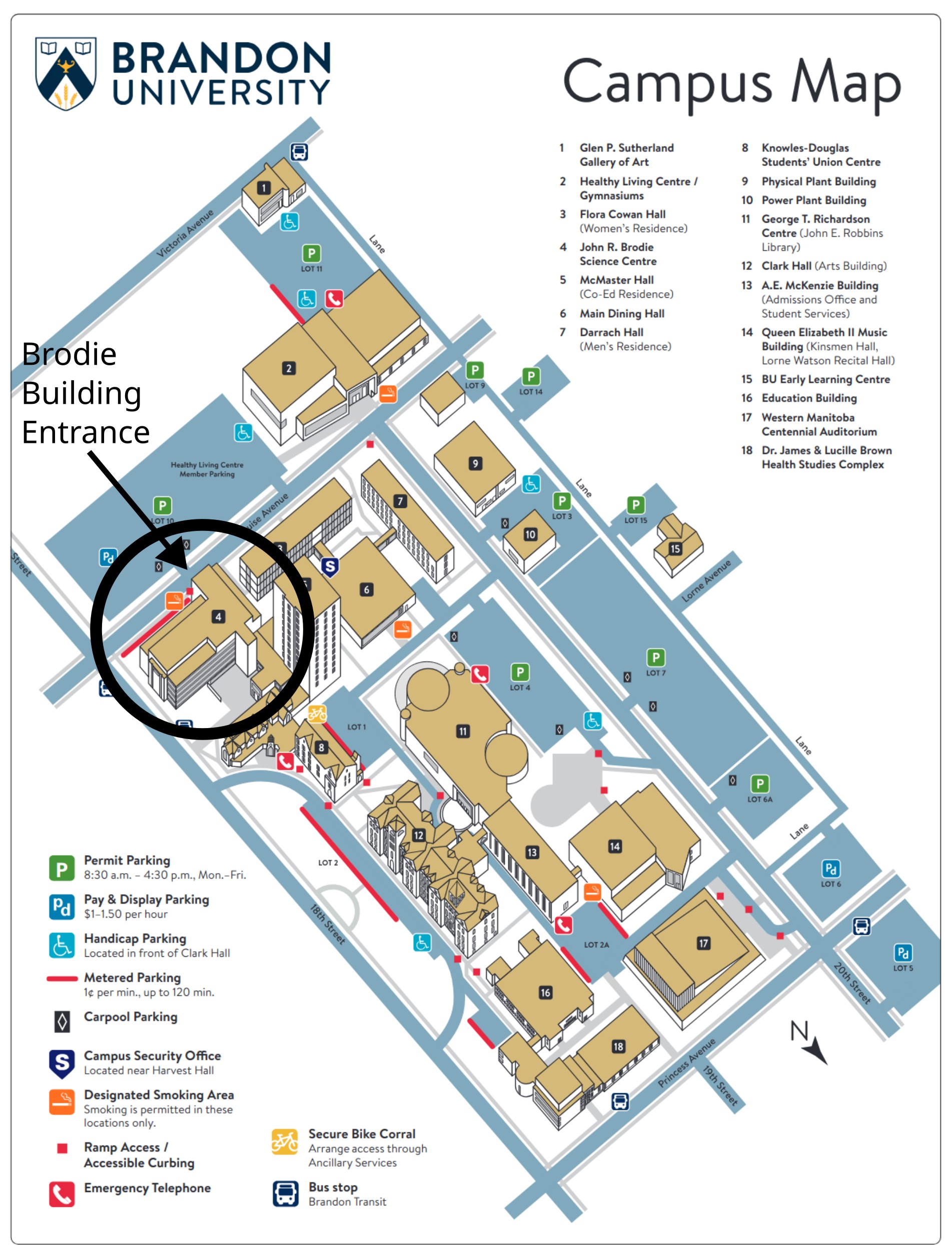Our talks are hosted at Brandon University on the 4th floor of the Brodie Building.